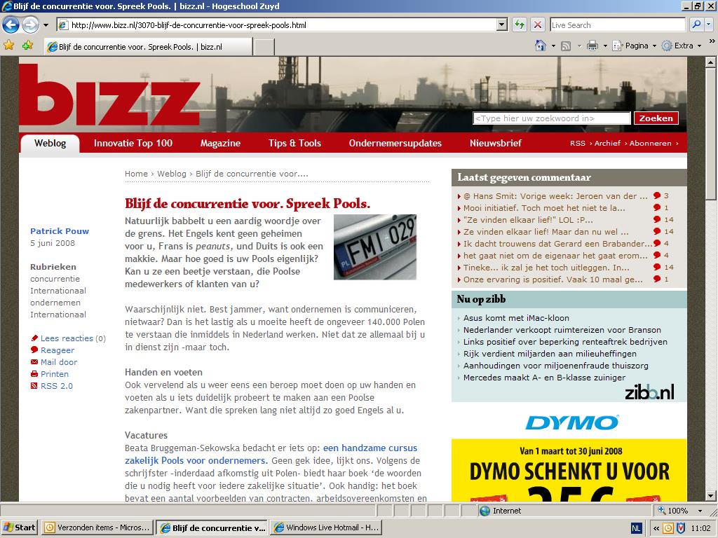 BooksBizz magazine about Polish for the Dutch, business vocabulary 22nd June 2021 Posted by communications unlimited 04 Nov Bizz magazine about Polish for the Dutch, business vocabularyFind below a short article written about our publication : Polish for the Dutch by the Bizz magazine for the entrepreneurs.